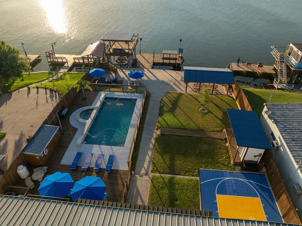 Our riverside rental is designed with amenities to delight everyone in your group! Enjoy spacious living areas perfect for gathering and relaxing after a day of adventure. The well-equipped kitchen makes meal prep a breeze, while cozy bedrooms provide restful retreats for a good night’s sleep. Outside, you’ll find a beautiful deck ideal for barbecues and riverside views, plus plenty of space for games and activities. Inside, challenge friends to a game of pool or darts, or enjoy some friendly competition at the basketball court. For more fun, dive into the pool, unwind in the jacuzzi, or engage in a lively match of foosball, air hockey, or ping pong. Whether you're fishing, hunting, or simply soaking up the sun, our property offers something for everyone to enjoy, ensuring a memorable stay for all!